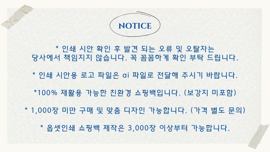 • Àμ⸦ ÇϽô °æ¿ì, ´ç»ç¿¡¼­´Â °í°´´ÔÀÌ º¸³»ÁֽŠ¿ø°í ¹× µµ¾ÈÀ» ±âº»À¸·Î ÇÏ¿© Çʸ§À» Á¦ÀÛÇϰí, Á¤È®¼ºÀ» ±âÇϱâ À§ÇØ °í°´´Ô°ú ÀçÈ®ÀÎ ÈÄ ½ÇÁ¦ Àμâ ÀÛ¾÷À» ÇÕ´Ï´Ù. (ÃÖÁ¾ µðÀÚÀÎ ½Ã¾ÈÀÇ À߸øµÈ È®ÀÎÀº Ã¥ÀÓÀÌ ¼ö¹ÝµÇ¹Ç·Î Á¤È®ÇÏ°Ô È®ÀÎÇÏ¿© Áֽñ⠹ٶø´Ï´Ù.)