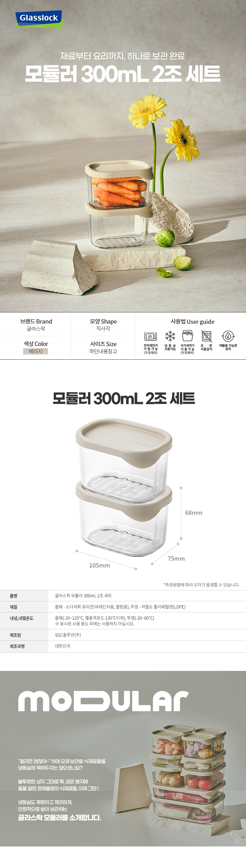 ±Û¶ó½º¶ô ¸ðµâ·¯ 300ml 2Á¶¼¼Æ®